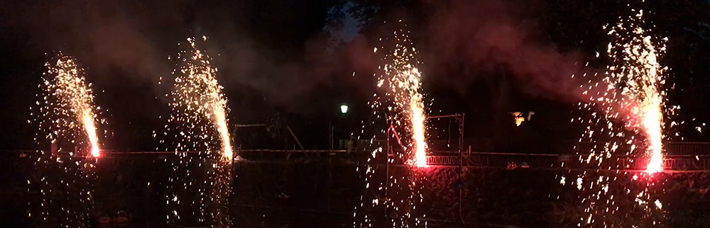 Dieses sogenannte Barockfeuerwerk besteht aus leisem Leucht-, Sprüh- und Drehfeuerwerk. Die Effekte kommen ohne lauten Knall aus. Gerade an Orten, wo lautes Feuerwerk nicht gestattet ist, kommen unsere Barockfeuerwerke zum Tragen. Sie legen die Dauer zwischen Fünf und Fünfzehn Minuten fest. Wir bieten Ihnen zusätzliche Erweiterungspakete, aus denen Sie Ihr ganz individuelles Feuerwerk zusammenstellen können. Dementsprechend choreografieren wir Ihr ganz persönliches Feuerwerk. Diese Feuerwerkskategorie können wir auf die unterschiedlichsten örtlichen Gegebenheiten anpassen. Wir überzeugen selbst an schwierigen und bebauten Locations mit unseren Feuerwerken. Sie brauchen nichts weiter tun, als sich auf Ihr persönliches Feuerwerk zu freuen. Wir kümmern uns um die bürokratischen Angelegenheiten und vor allem darum, Ihnen ein unvergessliches Barockfeuerwerk zu zünden.