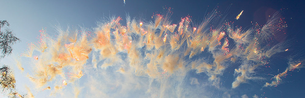 Sie Planen eine Feier am helllichten Tage und möchten Ihre Gäste dennoch mit einem Feuerwerk überraschen? Gar kein Problem. Wir konzipieren Ihr ganz persönliches Tagfeuerwerk mit speziellen Effekten, die auch am Tag ihre Wirkung voll entfalten. Sie legen die Dauer zwischen fünf und fünfzehn Minuten fest. Mit unseren zusätzlichen Modulen können Sie Ihr ganz persönliches Tagfeuerwerk individualisieren. Diese Feuerwerkskategorie können wir auf die unterschiedlichsten örtlichen Gegebenheiten anpassen. Wir überzeugen selbst an schwierigen und bebauten Locations mit unseren Tagfeuerwerken. Sie brauchen nichts weiter tun, als sich auf Ihr persönliches Feuerwerk zu freuen. Wir kümmern uns um die bürokratischen Angelegenheiten und vor allem darum, Ihnen ein erstklassiges Feuerwerk zu zünden.